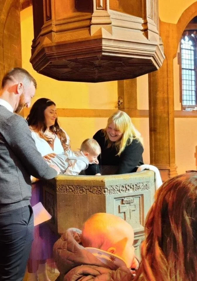 The font was donated by Mr Richard Pilkington in memory of his wife. The font canopy was donated by Mrs Lea, in memory of her husband’s forty years worth of work with children.